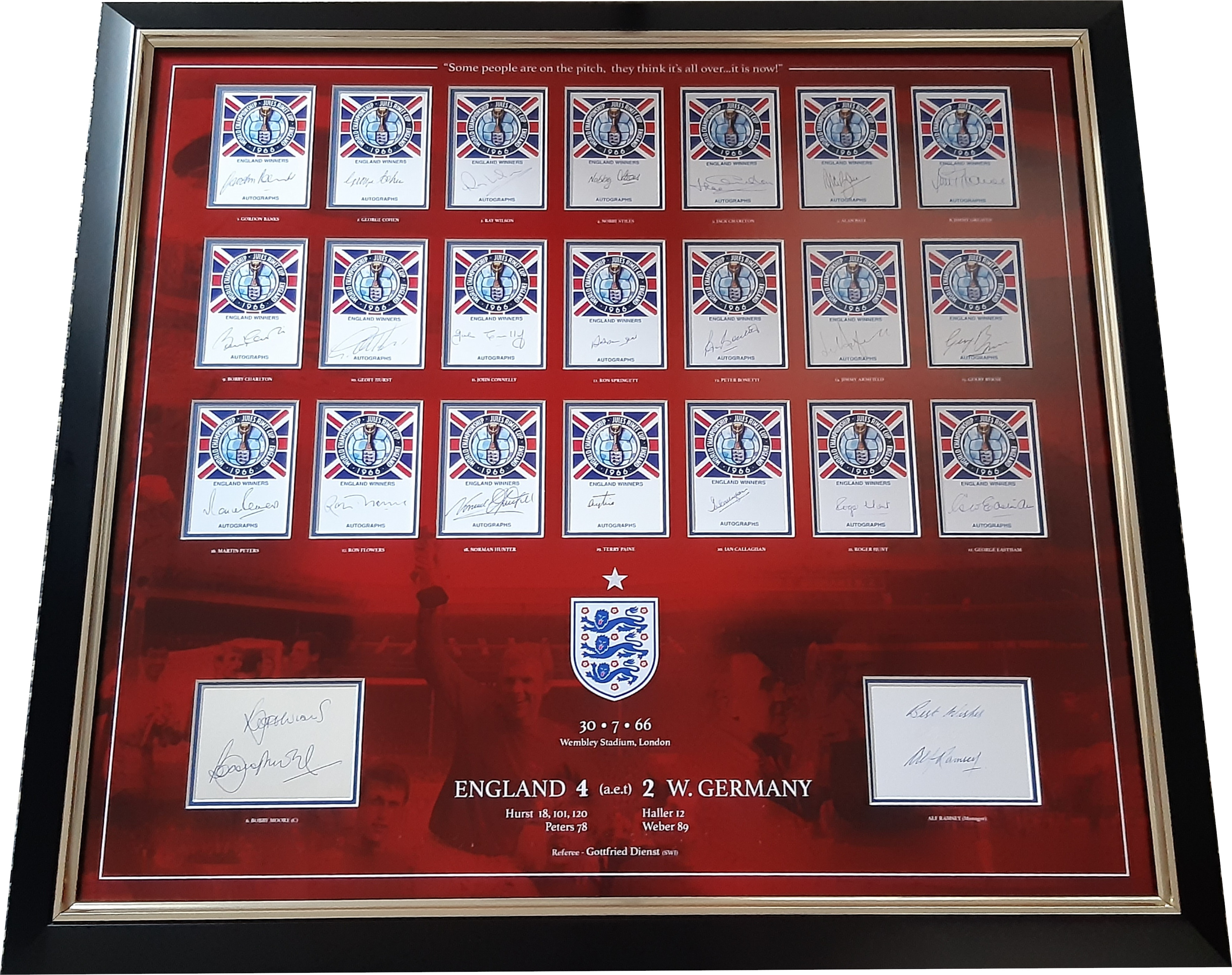 We specialise in football memorabilia, and in pieces related to England’s 1966 world cup triumph in particular. Find autographed sports memorabilia linked to your favourite team, or search for figures from other sports such as boxing, cricket and snooker, using the search function above. If you have specific requirements, please contact us and we’ll do our utmost to help you find the sports memorabilia you’re searching for.