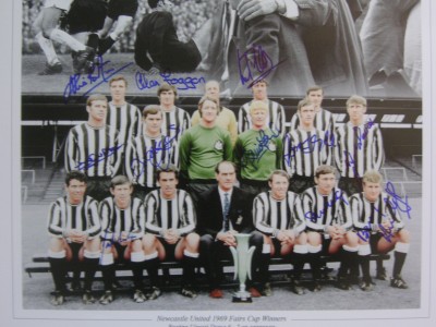 Newcastle 1969 Fairs Cup Winners Montage signed x 14