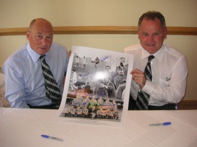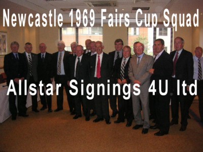 During a privately arranged signing with then Newcastle captain and Geordie Legend Bob Moncur, 14 players who played in the two Final legs and qualifying rounds have signed in blue permanant sharpie to the team photo and surrounding images.