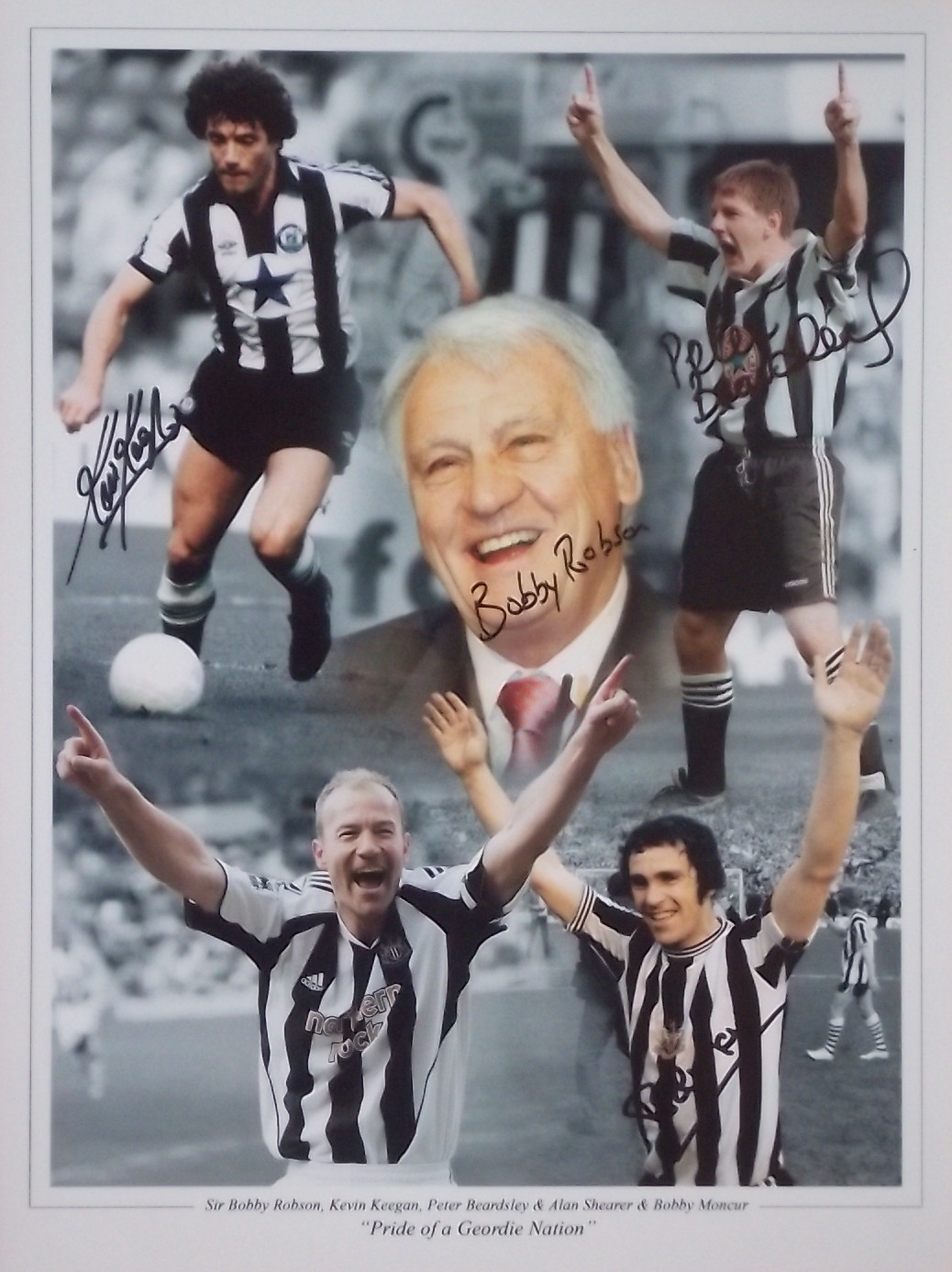Stunning Limited Edition Newcastle United Legends Montage by Sir Bobby Robson, Kevin Keegan, Bob Moncur and Peter Beardsley.
