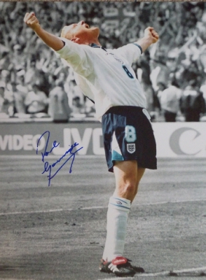 During a signing with Paul he signed a limited number of these officially licensed Images showing him celebrating after scoring a wonder goal against Scotland during the Euro 96 Championships. Signed using a permanent blue sharpie. Each image measures 16" x 12" Comes complete with our company COA which incorporates the photo of Gazza signing.